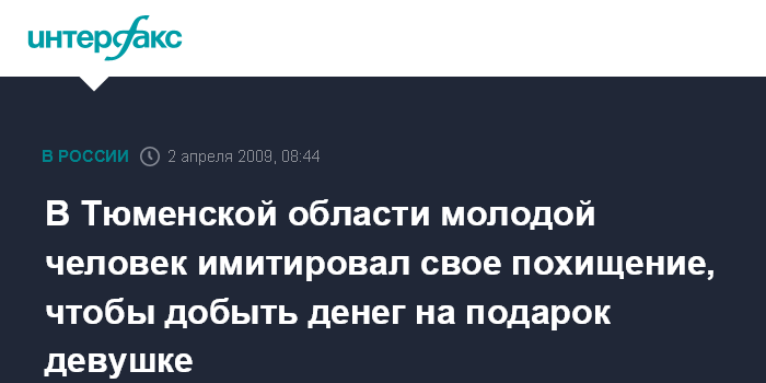 Москва. 2 апреля. INTERFAX.RU - 17-летний житель Тюменской области, решив отдать долг и купить подарок девушке, имитировал свое похищение с вымогательством.