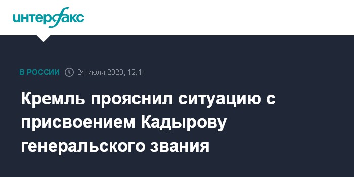 Накануне, 23 июля, Кадыров сообщил о присвоении ему звания генерал-майора. "Вчера я имел честь принять поздравления в связи с присвоением воинского звания генерал-майора лично от президента России, Верховного Главнокомандующего Владимира Путина. Я принял известие об этом решении, как и полагается по уставу, по стойке "смирно", - написал Кадыров в соцсетях. Он добавил, что президент во время телефонного разговора сам зачитал указ и пожелал дальнейших успехов.