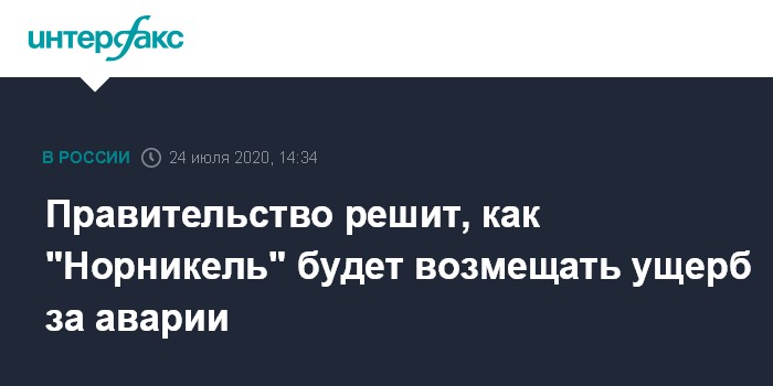 Правительство решит, как "Норникель" будет возмещать ущерб за аварии