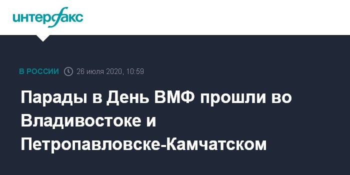 Москва. 26 июля. INTERFAX.RU - Военно-морские парады в воскресенье, в День ВМФ России, состоялись во Владивостоке и Петропавловске-Камчатском.