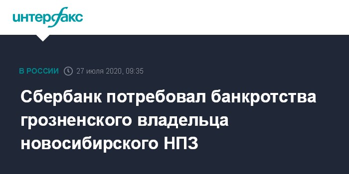 Сбербанк потребовал банкротства грозненского владельца новосибирского НПЗ