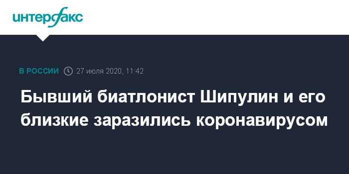 Москва. 27 июля. INTERFAX.RU - Бывший российский биатлонист, депутат Госдумы Антон Шипулин сообщил, что он и его семья заразились коронавирусом. Его жене потребовалась госпитализация, сам он, дочка и теща болеют дома, у них была высокая температура.