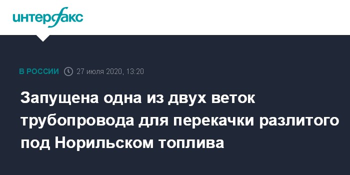 Запущена одна из двух веток трубопровода для перекачки разлитого под Норильском топлива