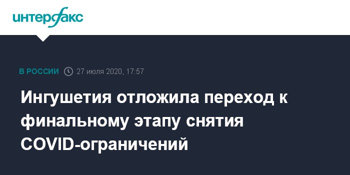Ингушетия отложила переход к финальному этапу снятия COVID-ограничений