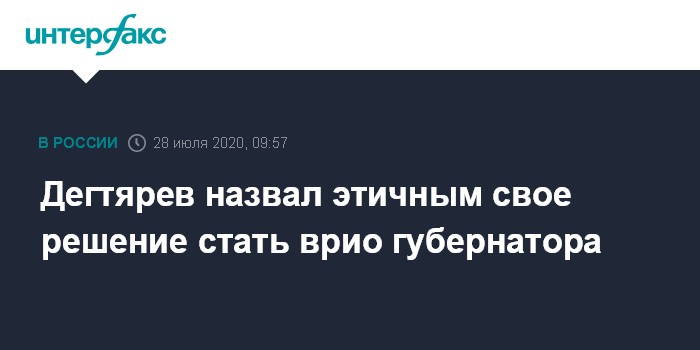 Москва. 28 июля. INTERFAX.RU - Михаил Дегтярев считает этичным то, что он согласился стать врио губернатора Хабаровского края до решения суд по делу предшественника - Сергея Фургала, которого задержали по делу о заказных убийствах и уволили "в связи с утратой доверия".