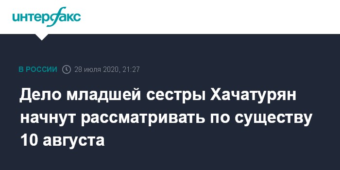 Москва. 28 июля. INTERFAX.RU - Бутырский суд Москвы 10 августа приступит к рассмотрению по существу уголовного дела в отношении младшей из сестер Хачатурян, обвиняемых в убийстве отца.