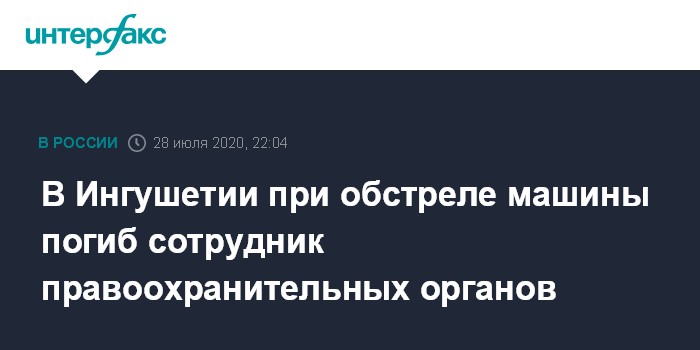 "Вечером 28 июля в сельском поселении Яндаре Назрановского района неизвестные люди, предположительно, из огнестрельного оружия обстреляли легковой автомобиль. По предварительным данным, от полученных ран сотрудник правоохранительных органов скончался", - сказал собеседник агентства.