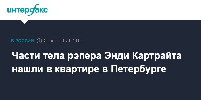 Москва. 30 июля. INTERFAX.RU - В петербургской квартире нашли расчленённое тело украинского рэпера Энди Картрайта, сообщил "Интерфаксу" в четверг информированный источник.