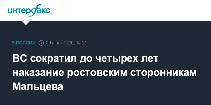 ВС сократил до четырех лет наказание ростовским сторонникам Мальцева
