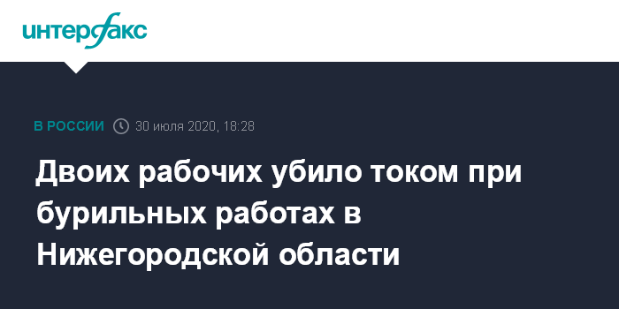 Москва. 30 июля. INTERFAX.RU - Двое мужчин погибли от удара током в Автозаводском районе Нижнего Новгорода. Об этом сообщает пресс-служба ГУ МЧС по региону в четверг.
