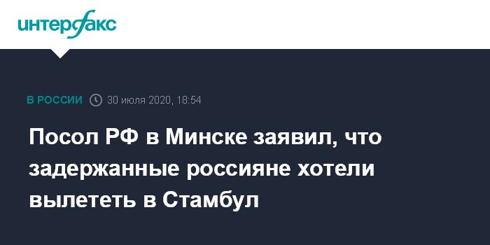 Москва. 30 июля. INTERFAX.RU - Задержанные в Белоруссии россияне намеревались вылететь в Стамбул, уточнил в четверг по просьбе журналистов посол РФ в Минске Дмитрий Мезенцев.