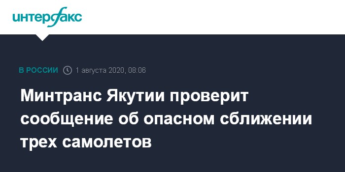 Москва. 1 августа. INTERFAX.RU - Власти Якутии проверяют сообщения о якобы произошедшем в ночь на субботу инциденте с участием трех самолетов, сообщает пресс-служба правительства региона.