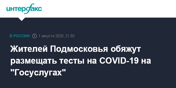Москва. 1 августа. INTERFAX.RU - Жители Подмосковья, которые прибывают из-за границы, в течение трех дней должны будут размещать результаты тестов на коронавирусную инфекцию через портал госуслуг.
