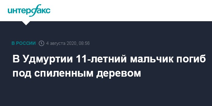 Москва. 4 августа. INTERFAX.RU - В Удмуртии следователи проверяют обстоятельства гибели 11-летнего ребенка, которого отец с дедом взяли в лес на заготовку валежника, сообщили в СК. На мальчика упало спиленное дерево, он умер в больнице от полученных травм.
