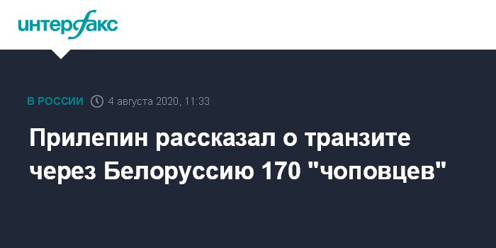 "Было несколько групп, можно назвать их ЧОПом, они переправлялись транзитом через Белоруссию в третью страну. Одна группа, которая должна была вылететь последней, была задержана белорусскими властями. Никакого отношения к Белоруссии или деятельности там эти группы не имели, Белоруссия была лишь транзитным пунктом", - заявил Прилепин 4 августа.