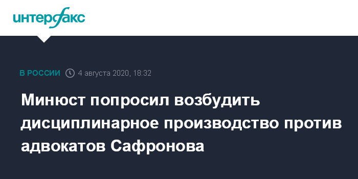 Минюст попросил возбудить дисциплинарное производство против адвокатов Сафронова