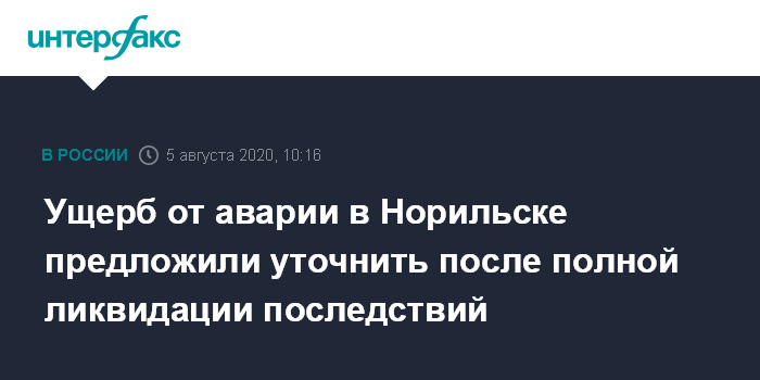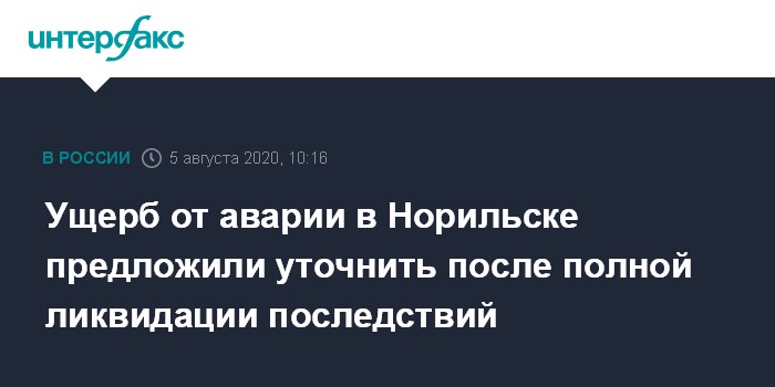 Ущерб от аварии в Норильске предложили уточнить после полной ликвидации последствий
