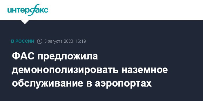 Москва. 5 августа. INTERFAX.RU - Федеральная антимонопольная служба подготовила проект постановления правительства о демонополизации рынка услуг наземного обслуживания (хэндлинга) в крупных аэропортах. Документ опубликован на портале проектов нормативных актов.