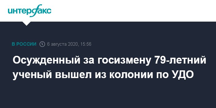 Осужденный за госизмену 79-летний ученый вышел из колонии по УДО