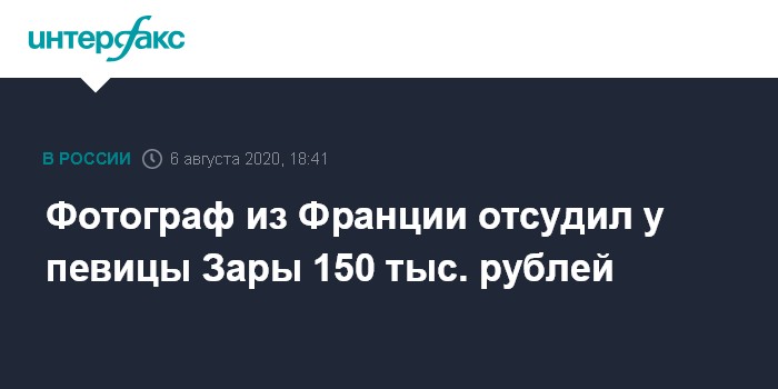 Москва. 6 августа. INTERFAX.RU - Петроградский районный суд Петербурга удовлетворил иск фотографа из Франции Фёийада де Шовена Франсуа Режи Диониса (Тесс Феяд) к певице Зарифе Мгоян (Зара) о защите интеллектуальных прав, сообщила в четверг объединенная пресс-служба судов города.