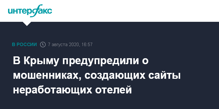 Москва. 7 августа. INTERFAX.RU - Министерство курортов и туризма Крыма предупредило о мошенниках, которые создают сайты неработающих отелей и требуют деньги за бронирование номеров.