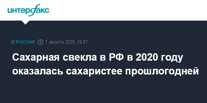 Москва. 7 августа. INTERFAX.RU - Сахарные заводы РФ начали переработку свеклы нового урожая. Ее сахаристость оказалась выше прошлогодней, что частично компенсирует сокращение посевных площадей в этом году на 19%.