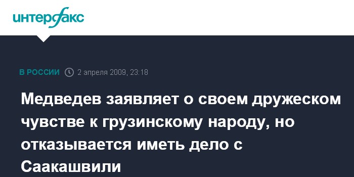 Медведев заявляет о своем дружеском чувстве к грузинскому народу, но отказывается иметь дело с Саакашвили