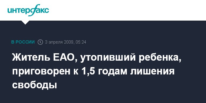 Житель ЕАО, утопивший ребенка, приговорен к 1,5 годам лишения свободы