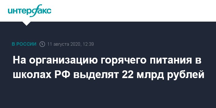 Москва. 11 августа. INTERFAX.RU - Около 22 млрд рублей будет выделено на организацию горячего питания в российских школах в этом году, заявил премьер-министр РФ Михаил Мишустин.