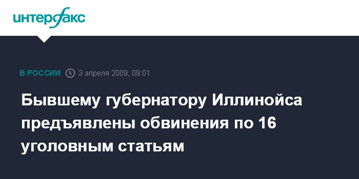 Москва. 3 апреля. INTERFAX.RU - Официальные обвинения по 16 федеральным уголовным статьям предъявлены бывшему губернатору американского штата Иллинойс Роду Благоевичу, сообщает американская телекомпания Си-Эн-Эн.