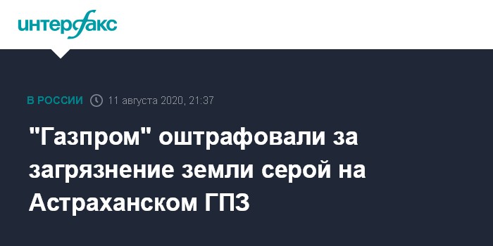 Москва. 11 августа. INTERFAX.RU - Межрегиональное управление Росприроднадзора по Астраханской и Волгоградской областям оштрафовало на 225 млн рублей ООО "Газпром переработка" за загрязнение почвы серой, сообщила пресс-служба управления.
