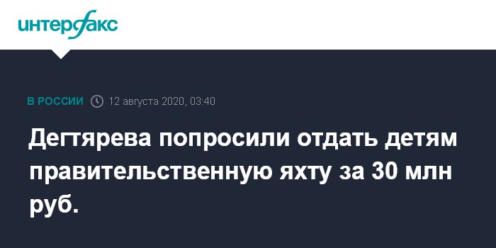 Дегтярева попросили отдать детям правительственную яхту за 30 млн руб.