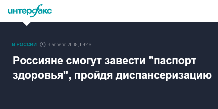 Москва. 3 апреля. INTERFAX.RU - Каждый работающий гражданин, который пройдет в этом году диспансеризацию, получит свой "паспорт здоровья".