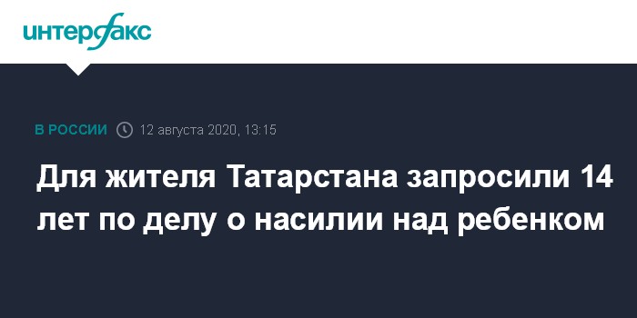 Москва. 12 августа. INTERFAX.RU - Представитель гособвинения на прениях в Бугульминском районном суде Татарстана в среду по делу о сексуальном насилии над полуторагодовалой девочкой запросил для ее отца наказание в виде 14 лет колонии. ОРб этом сообщил "Интерфаксу" официальный представитель прокуратуры республики Руслан Галиев.