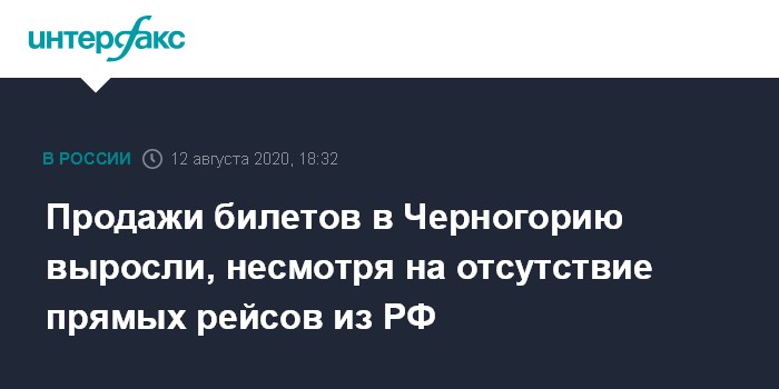Москва. 12 августа. INTERFAX.RU - Продажи авиабилетов из Москвы и Петербурга в Тиват и Подгорицу выросли многократно после заявления Черногории о готовности принимать россиян, при этом Россия пока не возобновила авиасообщение с этой страной, сообщили "Интерфаксу" в пресс-службе турсервиса OneTwoTrip в среду.