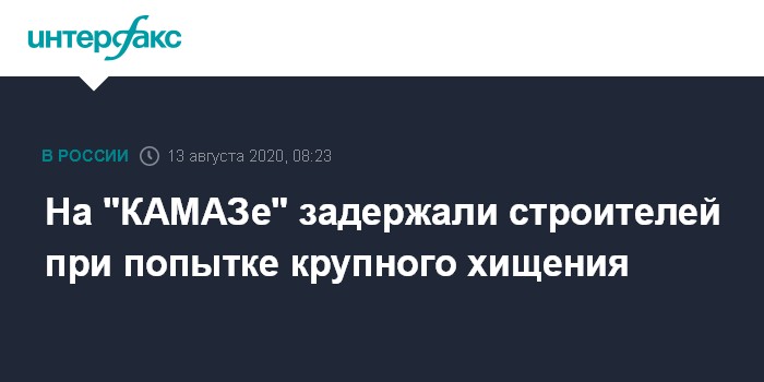 "12 августа сотрудниками управления МВД города Набережные Челны на внешнем периметре ПАО "КАМАЗ" была задержана группа лиц, работающих в строительной компании по договору на территории ПАО "КАМАЗ", при попытке хищения крупной партии товарно-материальных ценностей", - говорится в публикации.