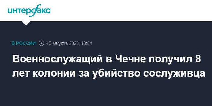 Москва. 13 августа. INTERFAX.RU - Суд в Чечне вынес обвинительный приговор военнослужащему войсковой части 6775 (Грозный) по делу об убийстве сослуживца, сообщает главное военное следственное управление СК РФ.