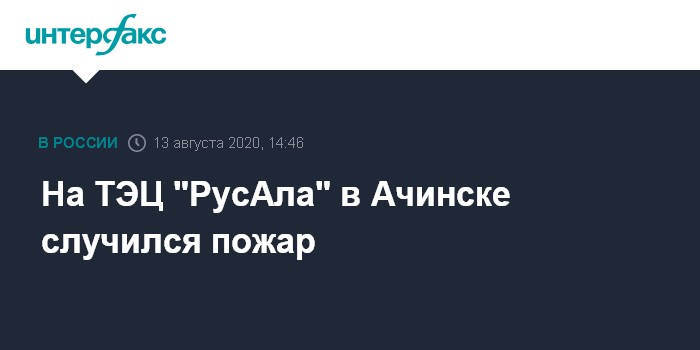Москва. 13 августа. INTERFAX.RU - В Ачинске в одном из цехов ТЭЦ "РусАЛа" произошел пожар. там загорелась отделка градирни на площади 280 квадратных метров, сообщили в управлении МЧС по Красноярскому краю. Позднее там сообщили, что пожар ликвидирован.