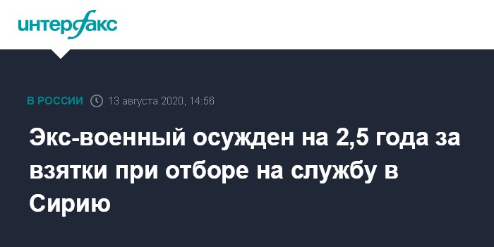 Экс-военный осужден на 2,5 года за взятки при отборе на службу в Сирию