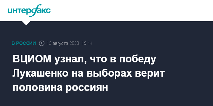 ВЦИОМ узнал, что в победу Лукашенко на выборах верит половина россиян