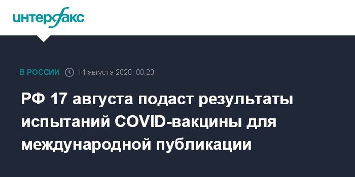 РФ 17 августа подаст результаты испытаний COVID-вакцины для международной публикации