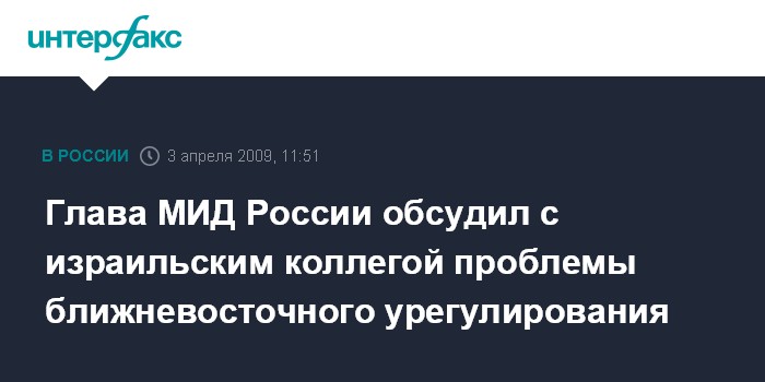 Глава МИД России обсудил с израильским коллегой проблемы ближневосточного урегулирования