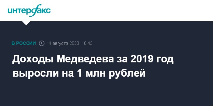 Доходы Медведева за 2019 год выросли на 1 млн рублей