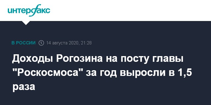 Доходы Рогозина на посту главы "Роскосмоса" за год выросли в 1,5 раза