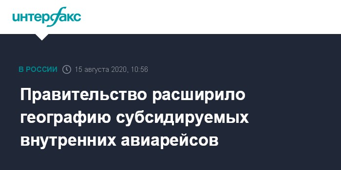 Москва. 15 августа. INTERFAX.RU - Премьер-министр России Михаил Мишустин подписал постановление правительства, согласно которому увеличивается количество маршрутов внутреннего авиасообщения, субсидируемых за счет федерального бюджета, сообщается на сайте правительства в субботу.