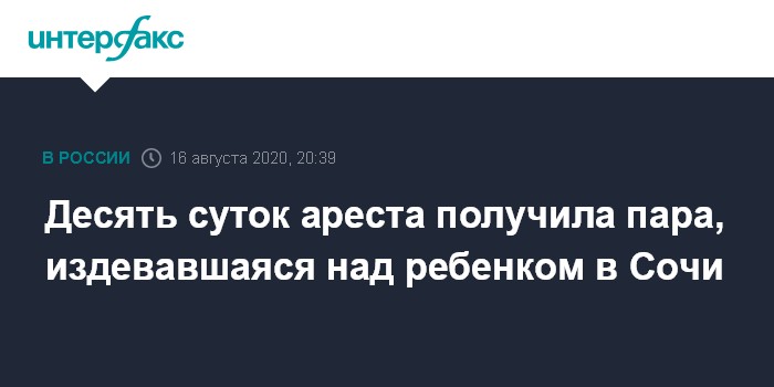Десять суток ареста получила пара, издевавшаяся над ребенком в Сочи