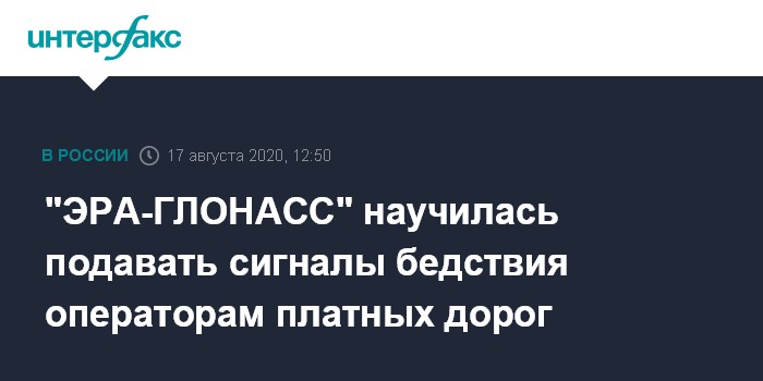 Москва. 17 августа. INTERFAX.RU - Государственная автоматизированная информационная система (ГАИС) "ЭРА-ГЛОНАСС" получила новую функцию - направлять сигнал вызова от водителя в случе поломки или ДТП не только в экстренные службы, но и оператору платной дороги, на которой случилась авария. Об этом сообщили в пресс-службе АО "ГЛОНАСС".