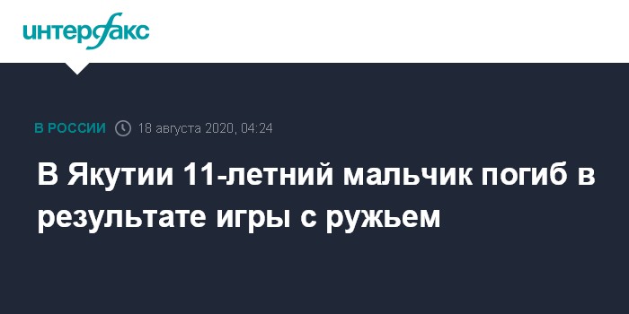 Москва. 18 августа. INTERFAX.RU - Ребенок погиб в Сунтарском районе Якутии во время игры с найденным ружьем, проводится проверка, сообщает пресс-служба прокуратуры региона.