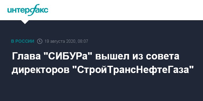 Москва. 19 августа. INTERFAX.RU - Глава "СИБУРа" Дмитрий Конов сообщил, что вышел из совета директоров АО "СтройТрансНефтеГаз", который принадлежал Геннадию Тимченко.