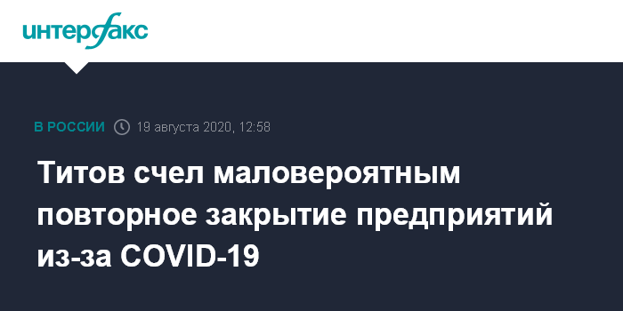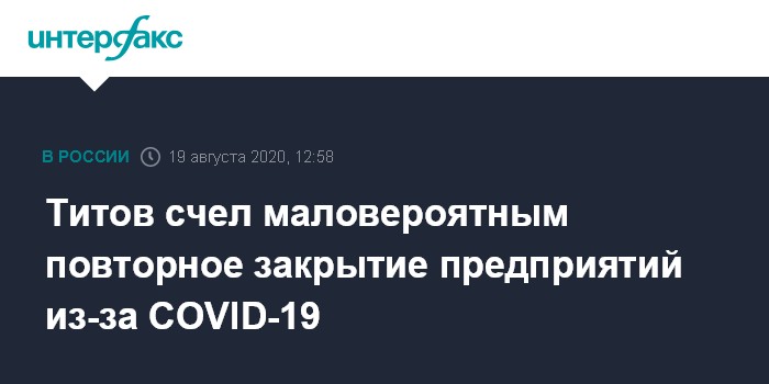 Титов счел маловероятным повторное закрытие предприятий из-за COVID-19